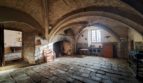 – un salon à double croisées d’ogives de 46,70 m² avec en son centre une clef de voûte à écusson. Cheminée monumentale. Ancien potager en pierre ;