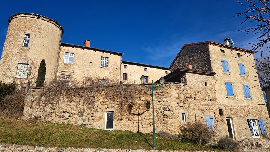 Exposé plein sud, le château se compose d’un corps de logis flanqué d’une massive tour cylindrique du XVe siècle de 12 mètres de diamètre. Il comprend 4 appartements indépendants.