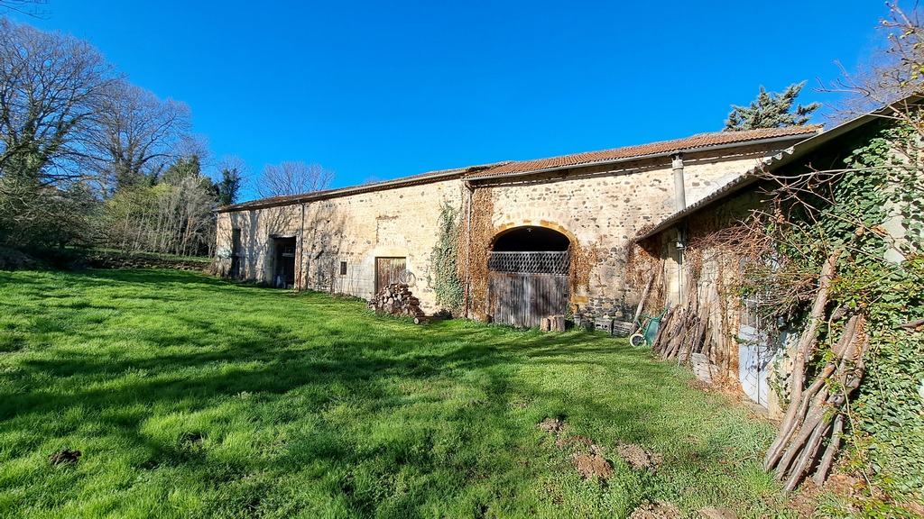 Une dépendance en forme de L comprend deux ateliers, un bûcher, une étable, une grange, un garage, une cave et un ancien logement.