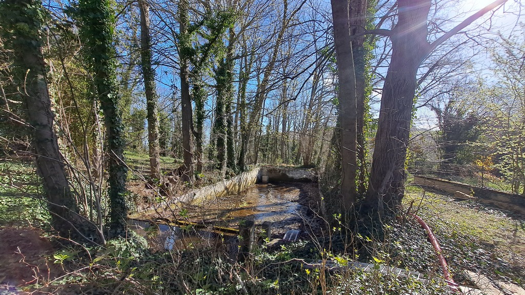Une source alimente une charmante fontaine XVIIIe en pierre de Volvic puis un bassin.