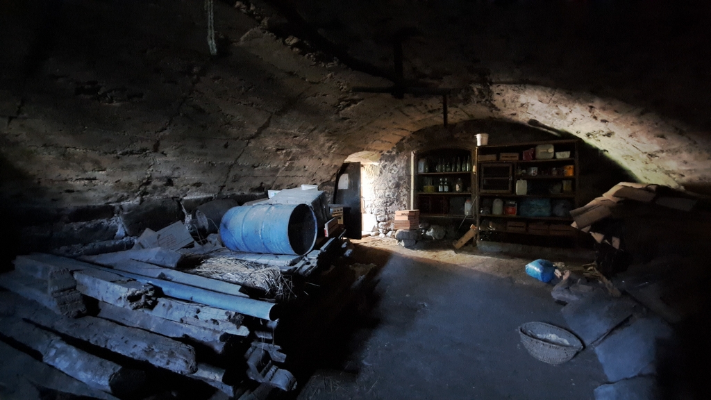 Sous le corps de logis XVIe : deux caves voûtées de 36 m² et 8 m².