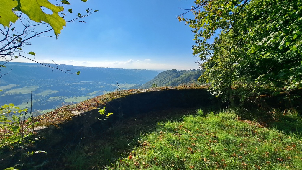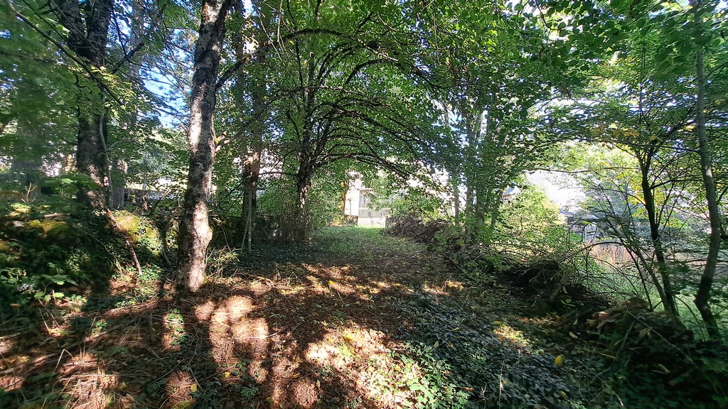 Puis de l’autre côté du chemin, en face du portail, une vaste parcelle de sous-bois de 9 373 m² traversée par une allée cavalière menant à un promontoire en pierre d’où le point du vue panoramique domine l’impressionnante vallée du Brezons, l’une des plus belles d’Europe avec sa forme en auge, selon Haroun Tazieff.
