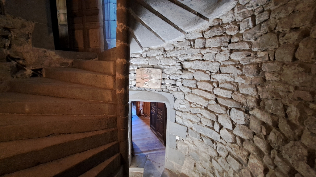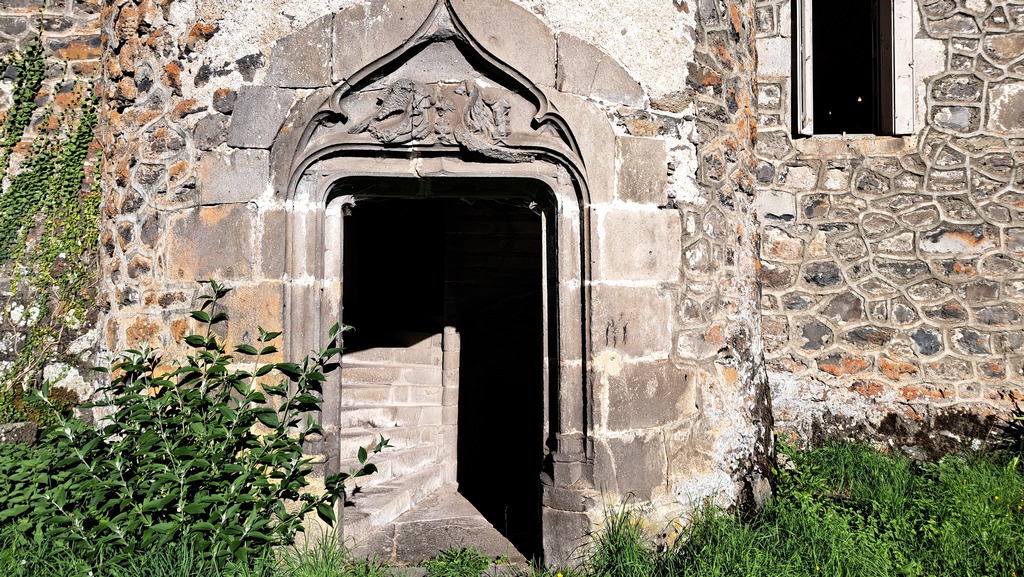 L’entrée se fait par un très bel encadrement mouluré à accolade surmonté d’une sculpture en pierre de l’Annonciation, dont les figures ont été mutilées à la Révolution.