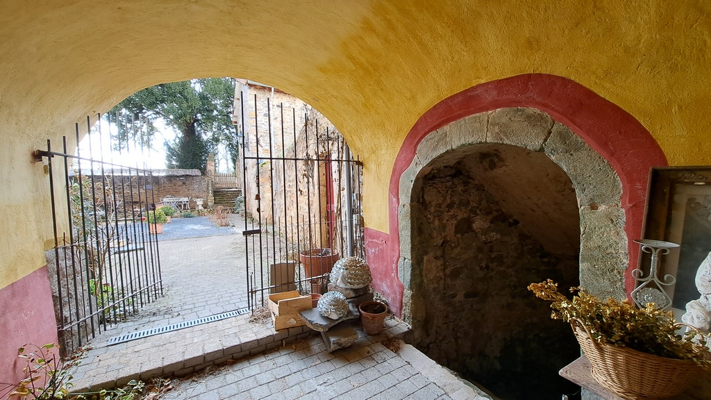 L’entrée se fait par une très belle porte XVIIIe donnant sur un passage voûté puis sur la cour intérieure exposée plein sud.