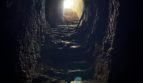 Depuis le passage voûté, accès par un escalier en pierre de 31 marches à une incroyable grotte taillée dans la roche à usage de cave avec en son centre un pilier.