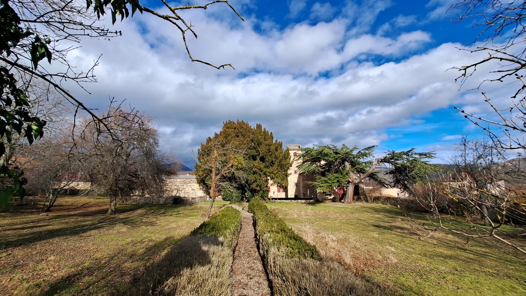 Un parc d’agrément aux arbres centenaires s’étend côté sud protégé par ses murs en pierre restaurés et prolongé au-delà au sud et à l’est par une prairie.