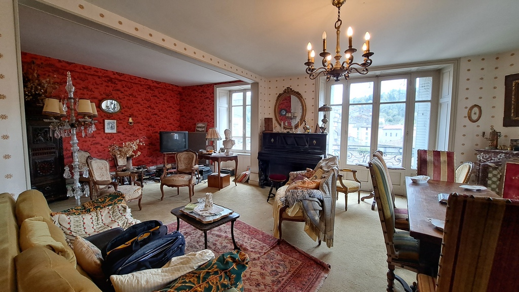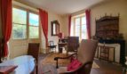 – un salon-salle à manger de 40,52 m² très lumineux. Parquet sous la moquette. Cheminée en marbre rouge. Une fenêtre et une porte-fenêtre donnant au sud sur un balcon offrant une vue panoramique sur le village. Une fenêtre à l’ouest ;
