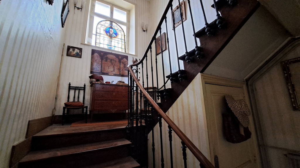 Au deuxième étage, un palier dessert une chambre et un vaste grenier.