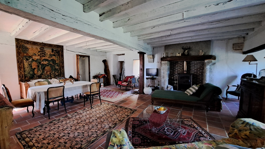 – un grand salon traversant de 55,32 m². Cheminée monumentale en pierre avec insert ;
